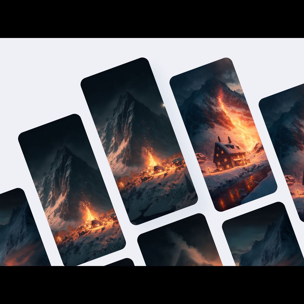 Are you looking for a beautiful and unique wallpaper for your phone? Look no further! Our Nordic mountain village wallpaper will transport you to a peaceful and serene landscape. The wallpaper features a stunning mountain village nestled among the snowy peaks of the Nordic mountains. As the sun sets, the village comes to life with the warm glow of fire light. The contrast between the dark night sky and the bright fire light creates a mesmerizing and captivating scene. Not only is this wallpaper visually stunning, it also promotes a sense of relaxation and tranquility. Imagine waking up to this peaceful view every morning or winding down at the end of a long day with the calming ambiance of the mountain village. So why wait? Transform your phone into a peaceful retreat with our Nordic mountain village wallpaper. Your phone, and your mind, will thank you.
